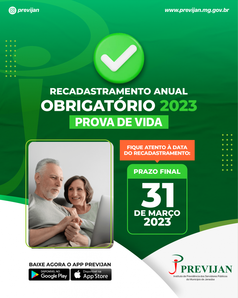 RECADASTRAMENTO ANUAL dos aposentados e pensionistas do Instituto de Previdência dos Servidores Municipais de Janaúba - PREVIJAN, para o ano de 2023.